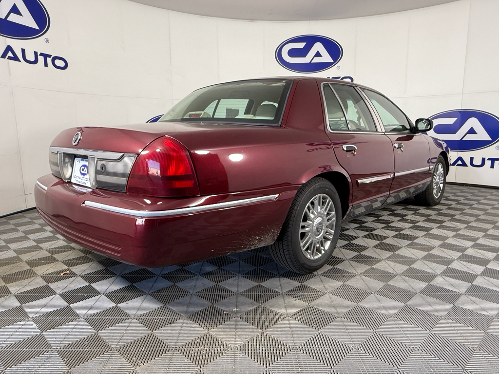 The leather seats in this Mercury Grand Marquis are a must for buyers looking for comfort, durability, and style. This vehicle has a clean AutoCheck report, ensuring its impeccable vehicle history. This unit keeps you comfortable with Auto Climate. This vehicle is a manufacturer certified pre-owned vehicle. This 2009 Mercury Grand Marquis is rear wheel drive. This model excites both driver and bystanders with a polished red exterior with racy lines. Maintaining a stable interior temperature in this model is easy with the climate control system. This unit has a V8, 4.6L high output engine. This 2009 Mercury Grand Marquis has an automatic transmission. Help alleviate lower back pain with the driver seat lumbar support in this vehicle. The FlexFuel capability of this unit allows you to select fuel depending on the price of E85 versus gasoline. The Mercury Grand Marquis features cruise control for long trips. Anti-lock brakes are standard on this Mercury Grand Marquis.