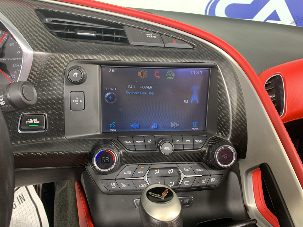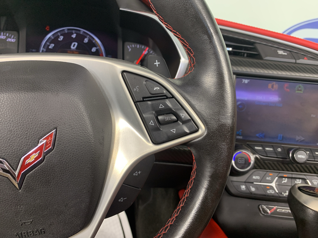 Preferred Equipment Group 3LT: Chevrolet MyLink AM/FM Stereo; Memory Package; Power Lumbar/bolster Seat Adjusters; Cargo Net; Navigation System; Heated and Vented Driver and Passenger Seats; Body-Color Outside Heated Power-Adjustable Mirrors; Head-Up Display; Theft Deterrent System; 3LT Interior Trim; Auto-Dimming Inside Frameless Rearview Mirror; Custom Leather Wrapped Interior Package; Universal Home Remote. Magnetic Selective Ride Control. Performance Exhaust. Carbon Fiber Instrument Panel Interior Trim. Red Painted Calipers. 19" X 8.5" Front and 20" X 10" Rear Black Aluminum Wheels. Sueded Microfiber-Wrapped Interior Trim Package. Carbon Flash-Painted Rear Spoiler. Battery Protection Package. Front License Plate Bracket. **Equipment listed is based on original vehicle build and subject to change. Please confirm the accuracy of the included equipment by calling the dealer prior to purchase.**