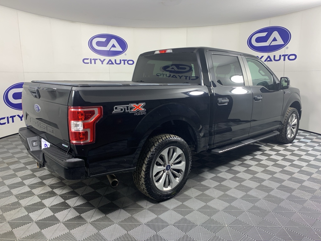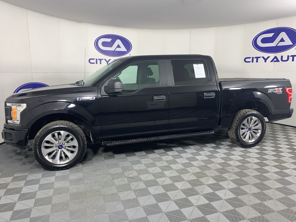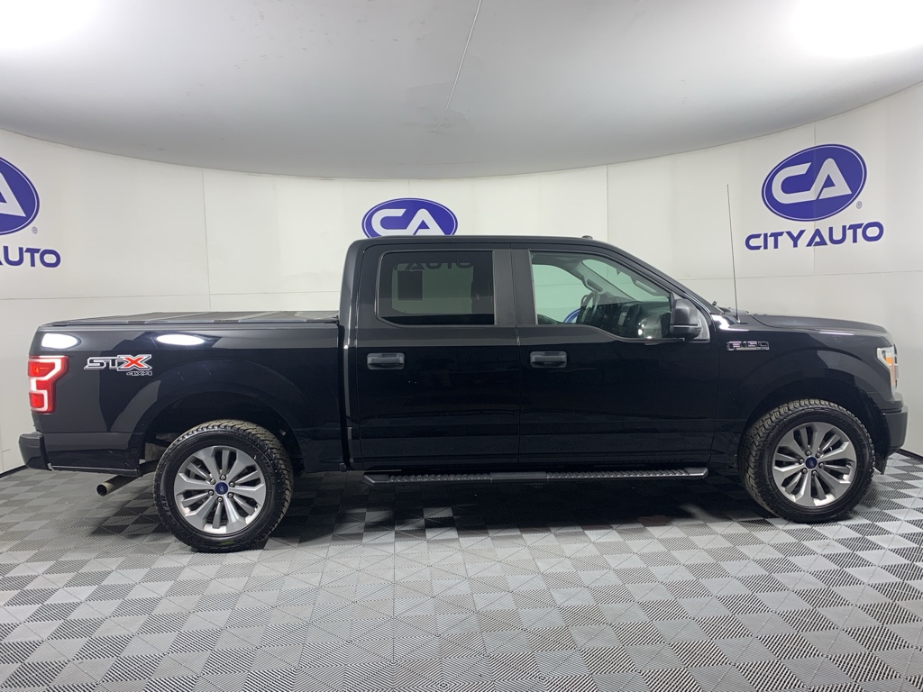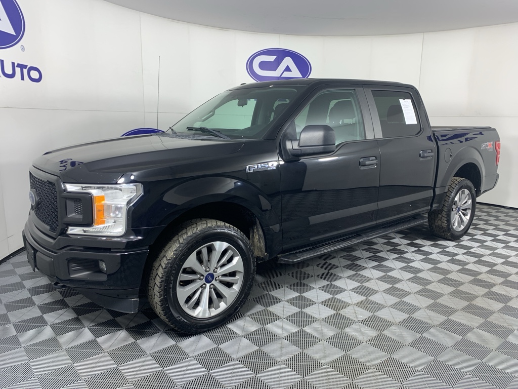 Half ton trucks are the most functional trucks for all purposes. When you encounter slick or muddy roads, you can engage the four wheel drive on this unit and drive with confidence. The high efficiency automatic transmission shifts smoothly and allows you to relax while driving. Protect it from unwanted accidents with a cutting edge backup camera system. This 1/2 ton pickup has an elegant black exterior finish. The vehicle has a clean CARFAX vehicle history report. This model is a manufacturer certified pre-owned vehicle. Maintaining a stable interior temperature in this Ford F-150 is easy with the climate control system. Easily set your speed in this 1/2 ton pickup with a state of the art cruise control system. Increase or decrease velocity with the touch of a button. The Electronic Stability Control will keep you on your intended path. This 1/2 ton pickup has a V6, 2.7L high output engine. Enjoy the tried and true gasoline engine in this vehicle. This 1/2 ton pickup features a hands-free Bluetooth phone system. Help alleviate lower back pain with the driver seat lumbar support in this Ford F-150. This 2018 Ford F-150 comes with running boards already installed. This model is equipped with the latest generation of XM/Sirius Radio.