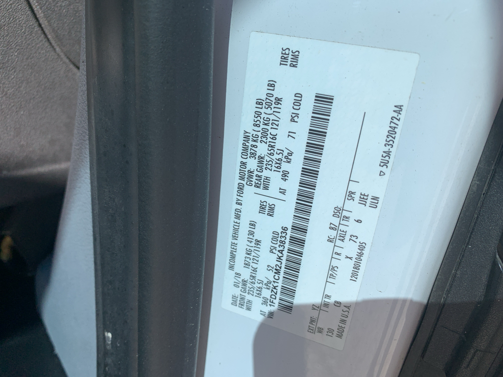 Order Code 302A: Cloth Front Bucket Seats; 3.73 Axle Ratio; 6-Speed Automatic Transmission with Overdrive and SelectShift; Vinyl Sun Visors; 235/65R16C AS BSW Tires; 8. 550 lbs GVWR; 16" Steel Wheels with Full Silver Cover; 3.7L Ti-VCT V6 Engine; Exterior Upgrade Package. Builders Prep Package: Front Carpet Floor Covering; Modified Vehicle Wiring System; Front License Plate Bracket. Privacy Glass. Charcoal Cloth Dual Bucket Seats with Power Driver Seat. Lane Keeping Alert with Driver Alert. AM/FM Stereo with Single CD/SYNC. Reverse Sensing System. Short-Arm Heated Power-Folding Mirrors with Turn Signals. Rear-Window Defroster/defogger. Running Board. 2 Additional Keys (4 Total). Front Row All-Weather Floor Mats. Daytime Running Lights. Modified Vehicle Wiring System. **Equipment listed is based on original vehicle build and subject to change. Please confirm the accuracy of the included equipment by calling the dealer prior to purchase.**