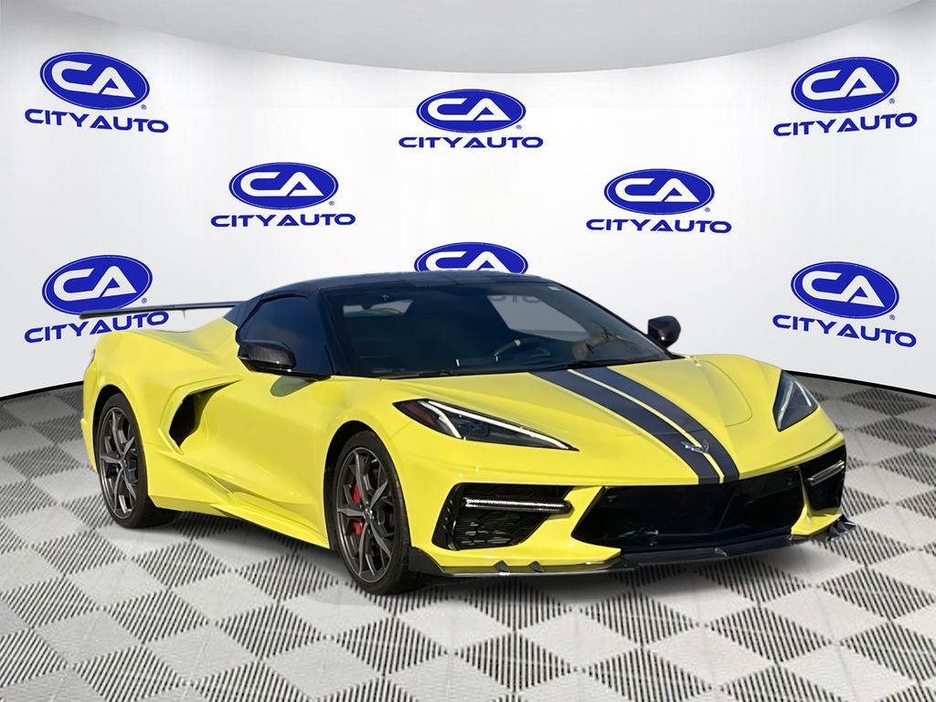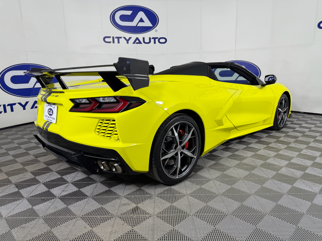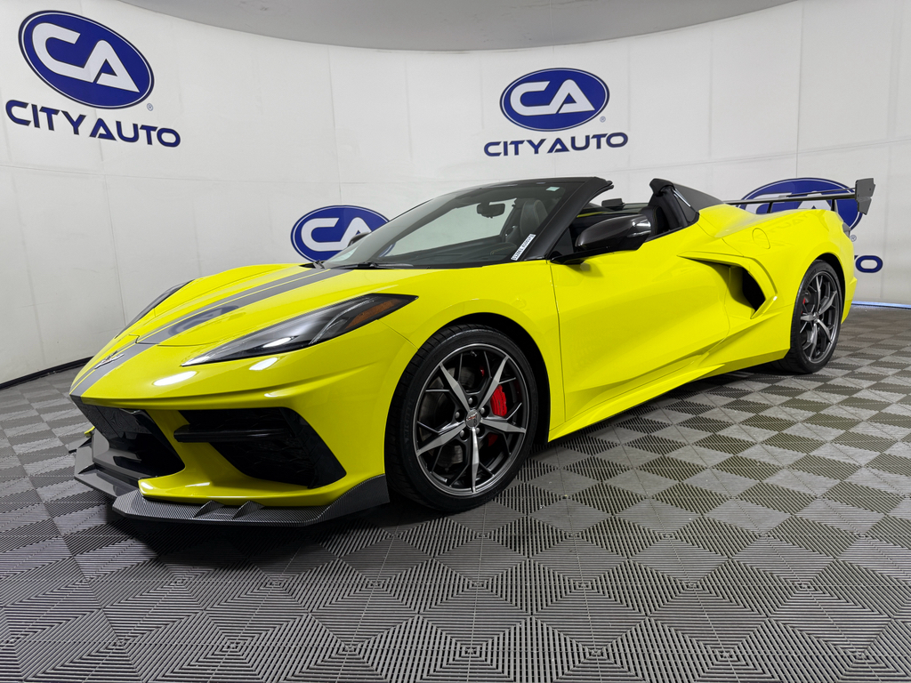 Z51 Performance Package: Performance Rear Axle Ratio; 245/35ZR19 Front and 305/30ZR20 Rear Blackwall Tires; Rear Z51 Spoiler; Z51 Performance Suspension; Electronic Limited-Slip Differential; Z51 Performance Brakes; Performance Exhaust with Stainless-Steel Tips; Heavy-Duty Cooling System. Preferred Equipment Group 3LT: HD Front and Rear Vision Cameras; Passenger Power Bolster Seat Adjuster; Power-Adjustable Outside Heated Mirrors; Side Blind Zone Alert; Power Passenger Lumbar Control Seat Adjuster; 2 Cargo Nets; Electrical Theft Deterrent System; GT2 Bucket Seats; Power Driver Lumbar Control Seat Adjuster; Chevrolet Infotainment 3 Premium System Radio; Memory Driver and Passenger Convenience Package; Heated and Vented Driver and Passenger Seats; Head-Up Display; Heated Steering Wheel; Sueded Microfiber-Wrapped Upper Interior Trim Package; Vehicle Interior Movement Theft Deterrent Sensor; Vehicle Inclination Theft Deterrent Sensor; Rear Cross Traffic Alert; Performance Data and Video Recorder; Custom Leather Wrapped Interior Package; Wireless Charging For Devices; Driver Power Bolster Seat Adjuster; Universal Home Remote. Front Lift Adjustable Height with Memory. Z51 Performance Suspension with Magnetic Selective Ride Control. Carbon Fiber Interior Trim. 19" X 8.5" Front and 20" X 11" Rear Spectra Gray Wheels. Convertible Top with Carbon Flash Nacelles and Roof. Visible Carbon Fiber Outside Mirror Covers. Performance Exhaust with Stainless-Steel Tips. Body-Color Exterior Accents. Sueded Microfiber-Wrapped Steering Wheel. Bright Red-Painted Calipers. Accelerate Yellow Met. Accelerate Yellow Met. Accelerate Yellow Met. Accelerate Yellow Met. Yellow Custom Leather Stitch. Yellow Seat Belt Color. Premium Carpeted Floor Mats. Chrome Exterior Badge Package. **Equipment listed is based on original vehicle build and subject to change. Please confirm the accuracy of the included equipment by calling the dealer prior to purchase.**Z51 Performance Package: Performance Rear Axle Ratio; 245/35ZR19 Front and 305/30ZR20 Rear Blackwall Tires; Rear Z51 Spoiler; Z51 Performance Suspension; Electronic Limited-Slip Differential; Z51 Performance Brakes; Performance Exhaust with Stainless-Steel Tips; Heavy-Duty Cooling System Preferred Equipment Group 3LT: HD Front and Rear Vision Cameras; Passenger Power Bolster Seat Adjuster; Power-Adjustable Outside Heated Mirrors; Side Blind Zone Alert; Power Passenger Lumbar Control Seat Adjuster; 2 Cargo Nets; Electrical Theft Deterrent System; GT2 Bucket Seats; Power Driver Lumbar Control Seat Adjuster; Chevrolet Infotainment 3 Premium System Radio; Memory Driver and Passenger Convenience Package; Heated and Vented Driver and Passenger Seats; Head-Up Display; Heated Steering Wheel; Sueded Microfiber-Wrapped Upper Interior Trim Package; Vehicle Interior Movement Theft Deterrent Sensor; Vehicle Inclination Theft Deterrent Sensor; Rear Cross Traffic Alert; Performance Data and Video Recorder; Custom Leather Wrapped Interior Package; Wireless Charging For Devices; Driver Power Bolster Seat Adjuster; Universal Home Remote Front Lift Adjustable Height with Memory Z51 Performance Suspension with Magnetic Selective Ride Control Carbon Fiber Interior Trim 19" X 8.5" Front and 20" X 11" Rear Spectra Gray Wheels Convertible Top with Carbon Flash Nacelles and Roof Visible Carbon Fiber Outside Mirror Covers Performance Exhaust with Stainless-Steel Tips Body-Color Exterior Accents Sueded Microfiber-Wrapped Steering Wheel Bright Red-Painted Calipers Accelerate Yellow Met Accelerate Yellow Met Accelerate Yellow Met Accelerate Yellow Met Yellow Custom Leather Stitch Yellow Seat Belt Color Premium Carpeted Floor Mats Chrome Exterior Badge Package **Equipment listed is based on original vehicle build and subject to change. Please confirm the accuracy of the included equipment by calling the dealer prior to purchase.**