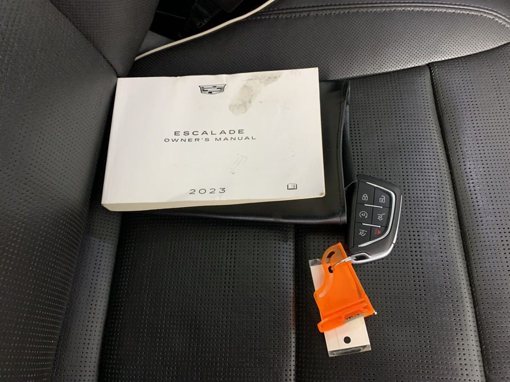 Carry lots of cargo while your passengers are comfortable. When you encounter slick or muddy roads, you can engage the four wheel drive on it and drive with confidence. This vehicle has auto-adjust speed for safe following. Light weight alloy wheels on the Cadillac Escalade are the perfect compliment to a stylish body. The vehicle offers Android Auto for seamless smartphone integration. Apple CarPlay: Seamless smartphone integration for the Cadillac Escalade - stay connected and entertained on the go! This 2023 Cadillac Escalade has an automatic transmission. See what's behind you with the back up camera on it. This unit is painted with a sleek and sophisticated black color. Good News! This certified CARFAX 1-owner vehicle has only had one owner before you. This 2023 Cadillac Escalade is a manufacturer certified pre-owned vehicle. Easily set your speed in the vehicle with a state of the art cruise control system. Increase or decrease velocity with the touch of a button. The vehicle has a V8, 6.2L high output engine. This model is equipped with a gasoline engine. This unit features a hands-free Bluetooth phone system. Keep your hands warm all winter with a heated steering wheel in the Cadillac Escalade . This Cadillac Escalade's Lane Departure Warning keeps you safe by alerting you when you drift from your lane. This 1/2 ton suv stays safely in its lane with Lane Keep Assist. The leather seats in the Cadillac Escalade are a must for buyers looking for comfort, durability, and style. Help alleviate lower back pain with the driver seat lumbar support in it. The installed navigation system will keep you on the right path. Enjoy the convenience of the power liftgate on this model. Start this model from inside with remote start. A trailer braking system is already installed on this 2023 Cadillac Escalade .