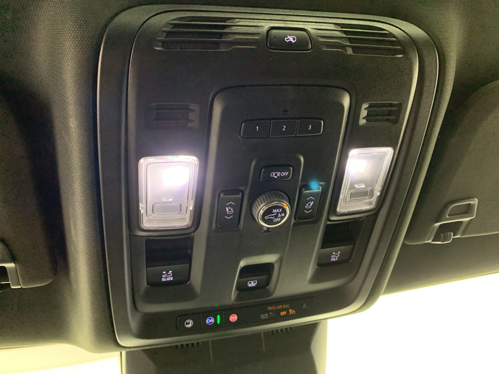 - First and second-row sliding and tilting glass sunroof with express open/close activation sunshade