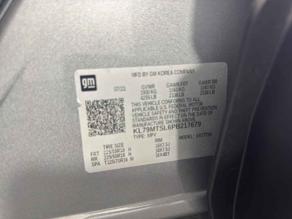 Convenience Package: Single-Zone Auto Climate Control Air Conditioning; 1 type-A and 1 type-C USB Charging-Only Ports; 8" Diagonal Color Touchscreen Display; 120-Volt Power Outlet; Inside Rearview Auto-Dimming Mirror; Driver and Front Passenger Illuminated Vanity Mirrors. Driver Confidence Package: Rear Cross Traffic Alert; Rear Park Assist; Lane Change Alert with Side Blind Zone Alert. Preferred Equipment Group 1RS: Heated Steering Wheel; Continuously Variable Transmission; Cloth with Leatherette Seat Trim; 225/55R18 All-Season BW Tires; 5.45 Axle Ratio; 4. 255 lbs (1. 930 Kgs) GVWR; 1.3L Ecotec Turbo DOHC SIDI Engine with Variable Valve Timing; Front Bucket Seats; 18" High Gloss Black Machined Aluminum; Chevrolet Infotainment 3 System Radio. Front and Rear All-Weather Floor Liners. Cargo Mat. Front License Plate Bracket. **Equipment listed is based on original vehicle build and subject to change. Please confirm the accuracy of the included equipment by calling the dealer prior to purchase.**
