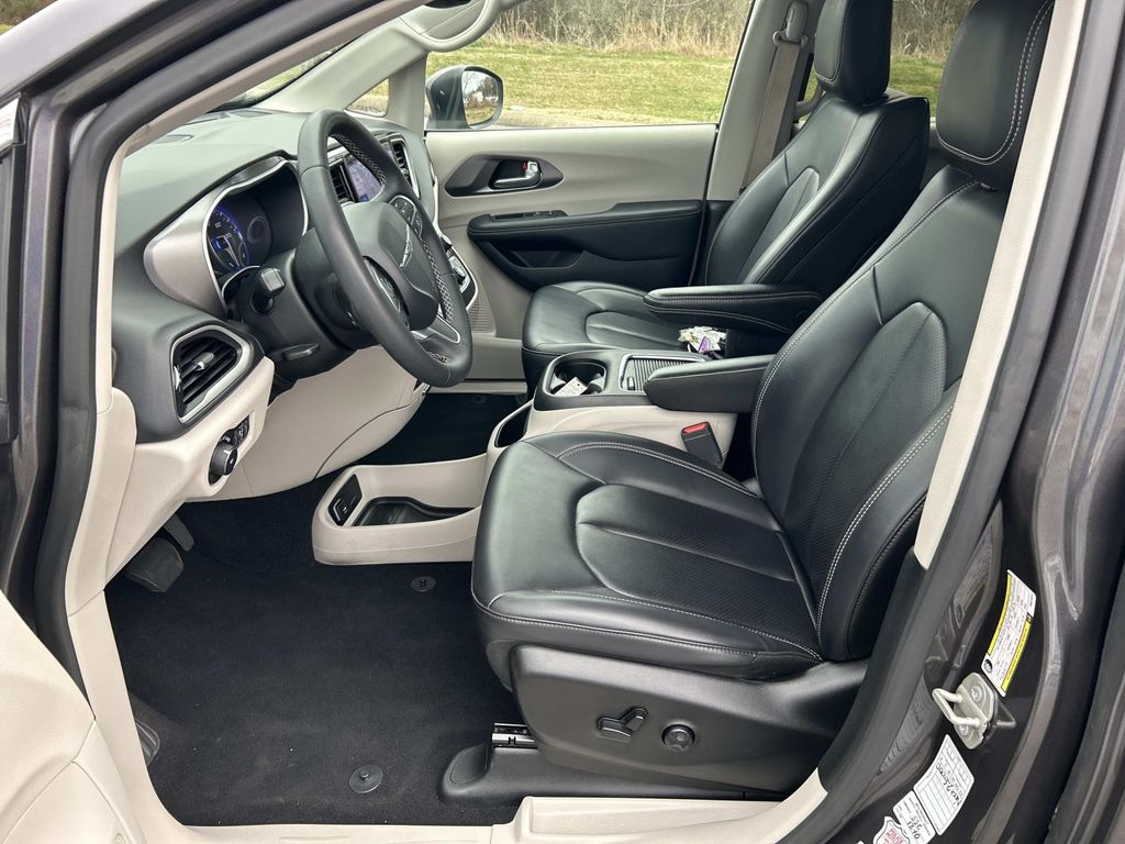 The Chrysler Pacifica's Lane Departure Warning helps keep you in your lane. It offers Apple CarPlay for seamless connectivity. The vehicle has automated speed control that adjusts to maintain a safe following distance, enhancing highway driving convenience. This vehicle is a certified CARFAX 1-owner. Bluetooth technology is built into this Chrysler Pacifica, keeping your hands on the steering wheel and your focus on the road. The leather seats in this model are a must for buyers looking for comfort, durability, and style. Start this Chrysler Pacifica from inside with remote start. This 2023 Chrysler Pacifica keeps you comfortable with Auto Climate. This model is pure luxury with a heated steering wheel. The state of the art park assist system will guide you easily into any spot. This mini van comes equipped with Android Auto for seamless smartphone integration on the road. The Chrysler Pacifica has gone through a stringent manufacturer pre-owned certification process, including a meticulous mechanical and reconditioning processes. Take the stress out of car buying with this certified pre-owned.
