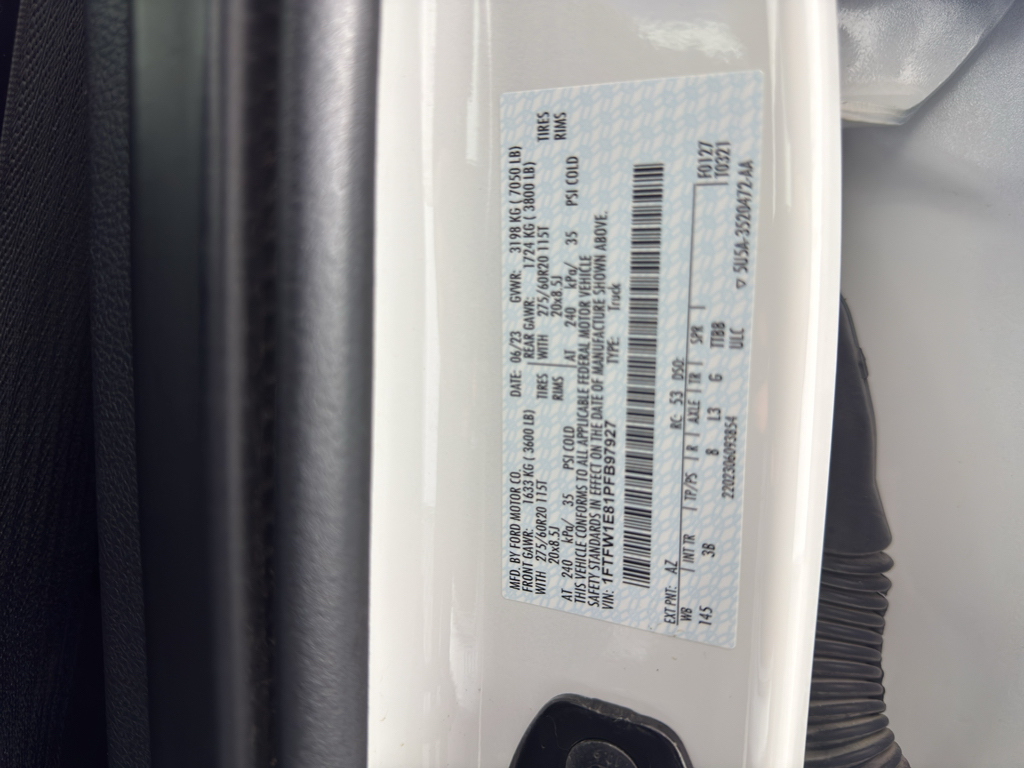 FX4 Off-Road Package: Off-Road Tuned Front Shock Absorbers; Skid Plates; Monotube Rear Shocks; Rock Crawl Mode; 4x4 FX4 Off-Road Bodyside Decal; Hill Descent Control; Electronic Locking with 3.31 Axle Ratio; Tray Style Floor Liner. Equipment Group 701A High: 275/60R20 BSW AT Tires; 360 Degree Camera; B&O Unleashed Sound System by Bang & Olufsen Radio; Pro Trailer Backup Assist and Pro Trailer Hitch Assist; Electronic 10-Speed Automatic Transmission; 7. 050 lbs Payload Package GVWR. Platinum Black Appearance. Ford BlueCruise 1.0: Active Park Assist 2.0. Trailer Tow Package: Integrated Trailer Brake Controller; Class IV Trailer Hitch Receiver; Pro Trailer Backup Assist and Pro Trailer Hitch Assist. Bed Utility Package: BoxLink; LED Box Lighting; Tailgate Step with Tailgate Work Surface; Power Tailgate. Twin Panel Moonroof. Star White Metallic TC. 360 Degree Camera. Tough Bed Spray-In Bedliner. Extended Range 36 Gallon Fuel Tank. Electronic Locking with 3.31 Axle Ratio. Tray Style Floor Liner. Wheel Well Liner. Skid Plates. BoxLink. **Equipment listed is based on original vehicle build and subject to change. Please confirm the accuracy of the included equipment by calling the dealer prior to purchase.**