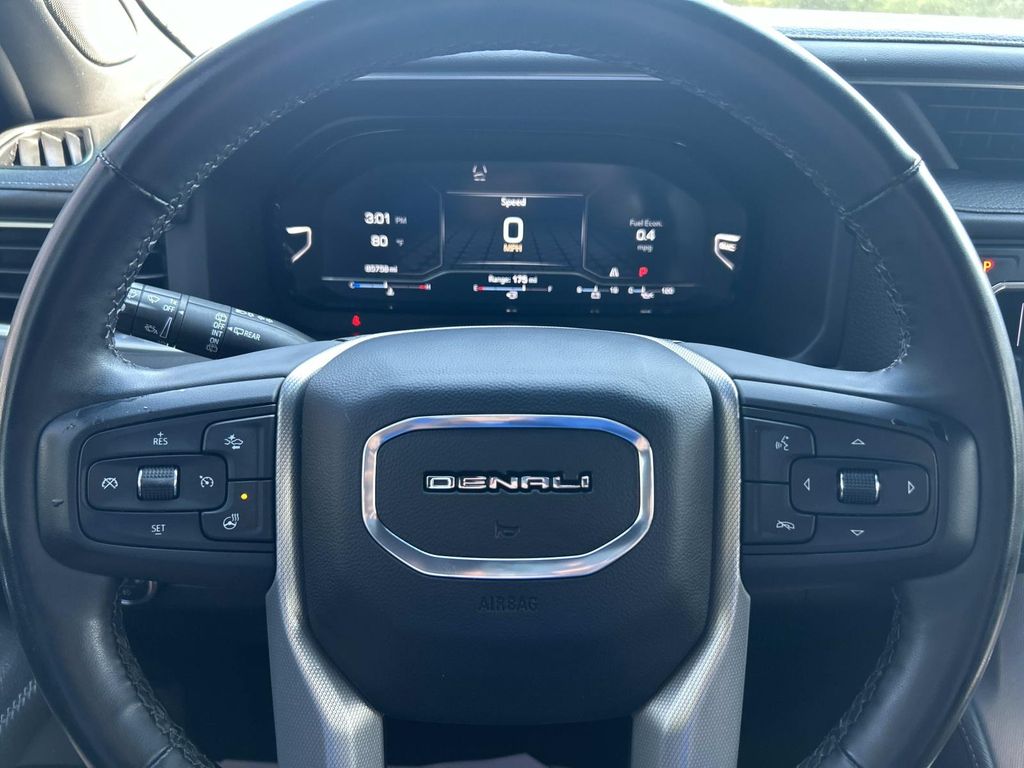 Max Trailering Package: Extra Capacity Cooling System. ProGrade Trailering System: Trailer Side Blind Zone Alert; Smart Trailer Integration Indicator; Integrated Trailer Brake Controller; Hitch Guidance with Hitch View. Preferred Equipment Group 5SA: Bright Front and Rear Door Sill Plates; 2 Presets For Outside Rearview Mirrors; 3rd Row 60/40 Power-Folding Split-Bench Seat; Safety Alert Seat; Chrome Door Handles with Body-Color Strip; 3 Years of OnStar Safety and Security; 6.2L EcoTec3 V8 Engine; Heated Steering Wheel; Heated Driver and Front Passenger Seats; Wireless Charging; Universal Home Remote; 3 Years of GMC Connected Services; Heated 2nd Row Outboard Position Seats; Hands-Free Power Programmable Rear Liftgate; Floor Console; Dual Exhaust System; GMC Pro Safety Plus; HD Surround Vision; Heated and Ventilated Driver and Front Passenger Seats; Power Tilt and Telescopic Steering Column; 15" Diagonal Multi-Color Head-Up Display; Rear Pedestrian Alert; Bose 14-Speaker Surround with CenterPoint; Magnetic Ride Control Suspension; Inside Rearview Auto-Dimming Mirror; Power Release 2nd Row Bucket Seats; Enhanced Automatic Emergency Braking; Outside Heated Power-Adjustable Mirrors; Galvano Bodyside Moldings. 22" X 9" Bright Machined Aluminum Wheels. Power-Retractable Assist Steps. Dual-Pane Panoramic Power Sunroof. 3 Years of OnStar Safety and Security. Onyx Black. Wheel Locks (set of 4). **Equipment listed is based on original vehicle build and subject to change. Please confirm the accuracy of the included equipment by calling the dealer prior to purchase.**