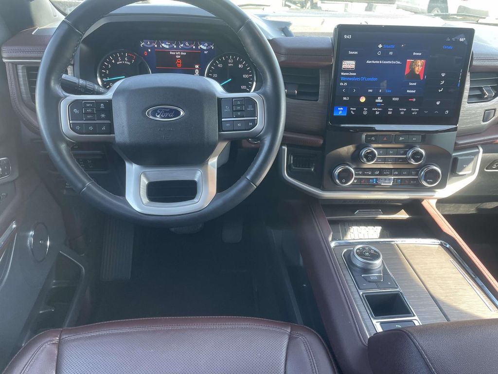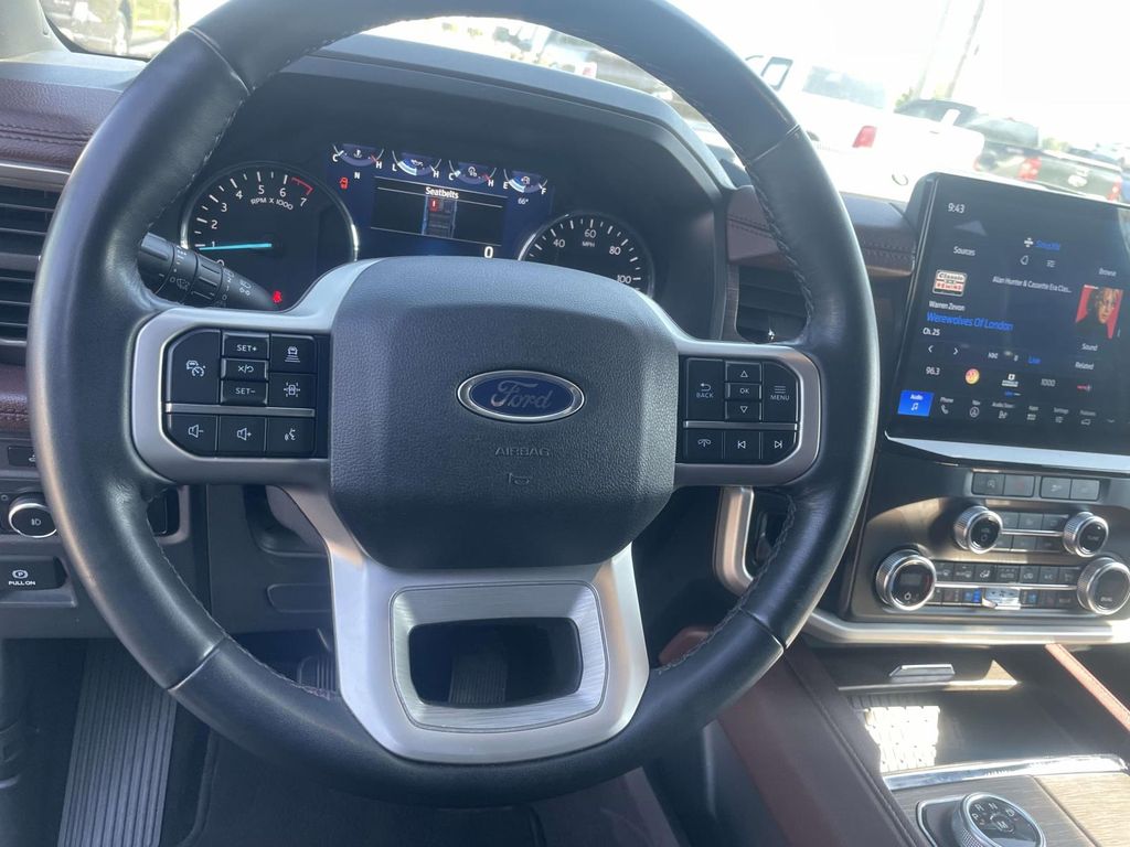Equipment Group 302A High Package: Heated and Ventilated Leather Front Captain's Chairs; 22" 12-Spoke Polished Aluminum Wheels; 7. 200 lbs GVWR; B&O Sound System by Bang and Olufsen; Ebony Black Mesh Grille; Power-Folding Sideview Mirrors with Autofold; Magnetic-Painted Power Deployable Running Boards; 10-Speed Automatic Transmission with SelectShift; 3.5L EcoBoost V6 Engine; Heavy-Duty Independent Suspension; P285/45R22 110H AS BSW Tires; 3.31 Axle Ratio. Ford Co-Pilot360 Assist 2.0: Connected Navigation; Reverse Brake Assist; 360-Degree Camera with Split View. 2nd Row Power-Folding 40/20/40 Leather Bench Seat. Mahogany. **Equipment listed is based on original vehicle build and subject to change. Please confirm the accuracy of the included equipment by calling the dealer prior to purchase.**