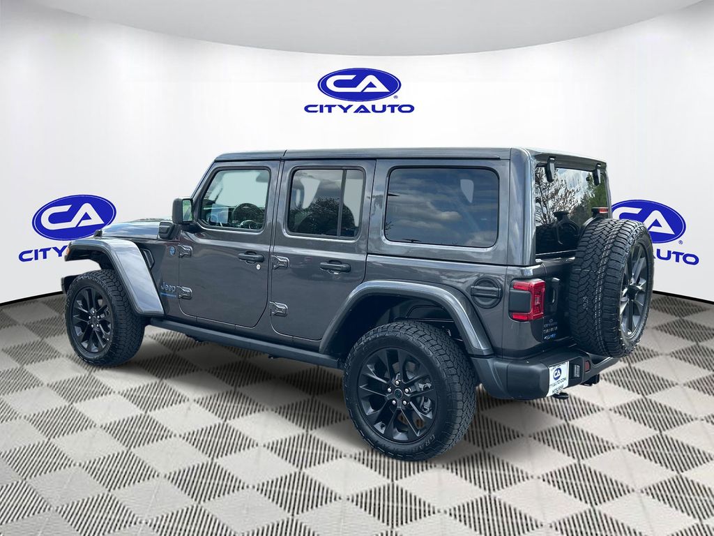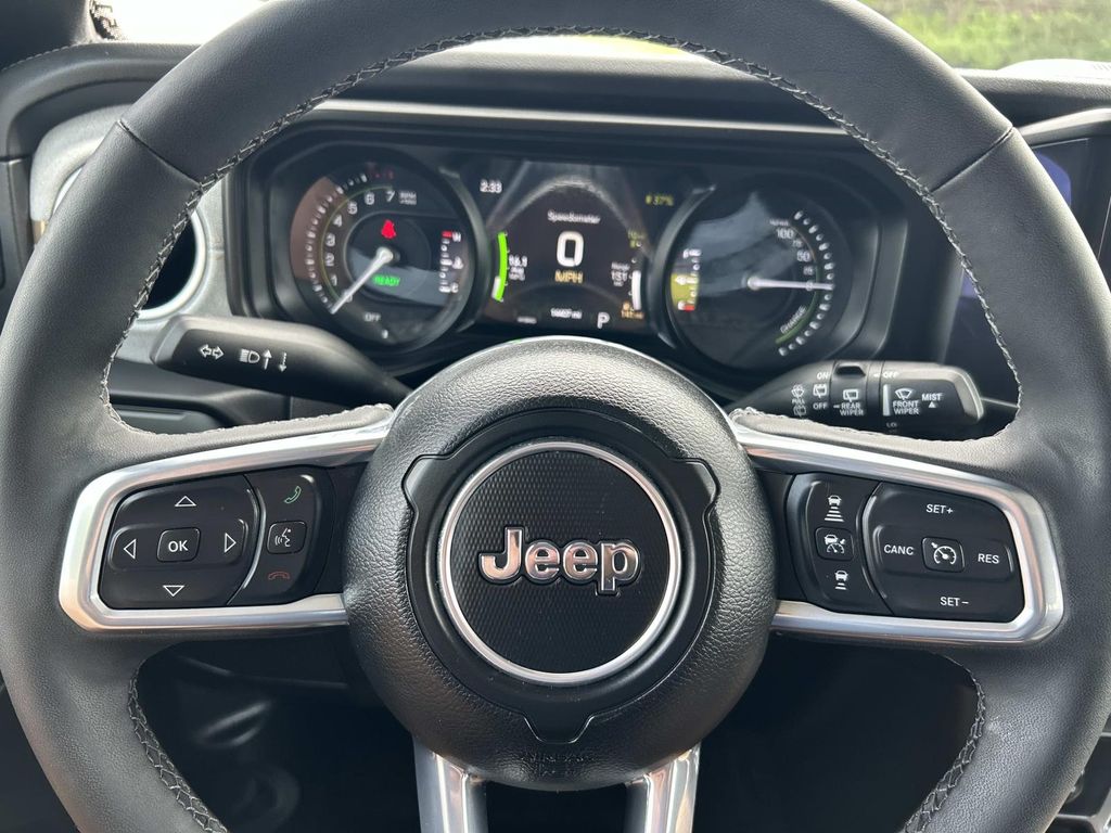 This unit features a hands-free Bluetooth phone system. This 2025 Jeep Wrangler 4xe 's Forward Collision Warning system alerts the driver to potential front-end collisions, enhancing safety. This vehicle has a clean AutoCheck report. See what's behind you with the back up camera on this model. This unit has auto-adjust speed for safe following. This Jeep Wrangler 4xe has only one previous owner, verified by AutoCheck. This unit offers Automatic Climate Control for personalized comfort. It offers Android Auto for seamless smartphone integration. Start this Jeep Wrangler 4xe from inside with remote start. The installed navigation system will keep you on the right path. This 1/2 ton suv is pure luxury with a heated steering wheel. This model is equipped with the latest generation of XM/Sirius Radio. This Jeep Wrangler 4xe offers Apple CarPlay for seamless connectivity. It has gone through a stringent manufacturer pre-owned certification process, including a meticulous mechanical and reconditioning processes. Take the stress out of car buying with this certified pre-owned.